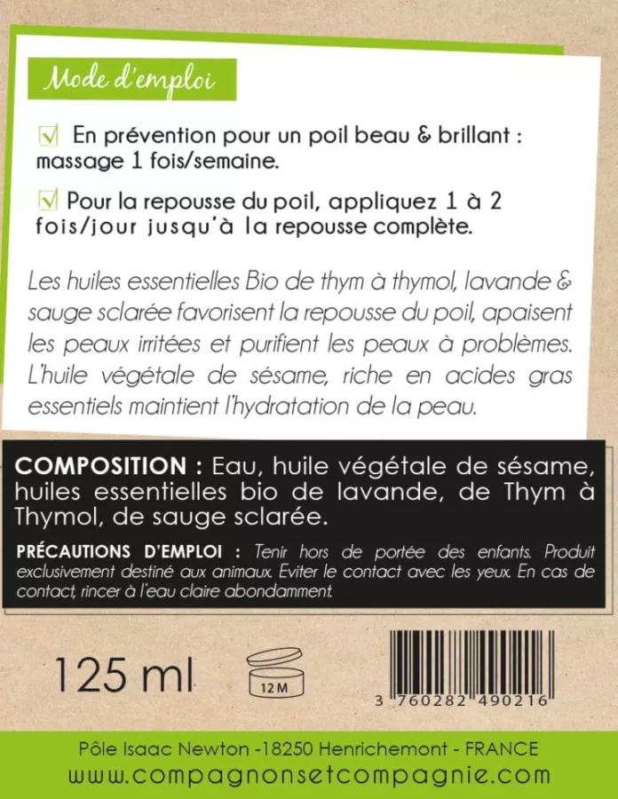 Repousse accélérée : 1 à 2 fois par jour jusqu’à repousse du poil.